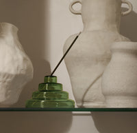 Inspired by Mesopotamian architecture, the incense holder perfectly suspends stick incense and is a perfect pedestal to watch your incense burn.