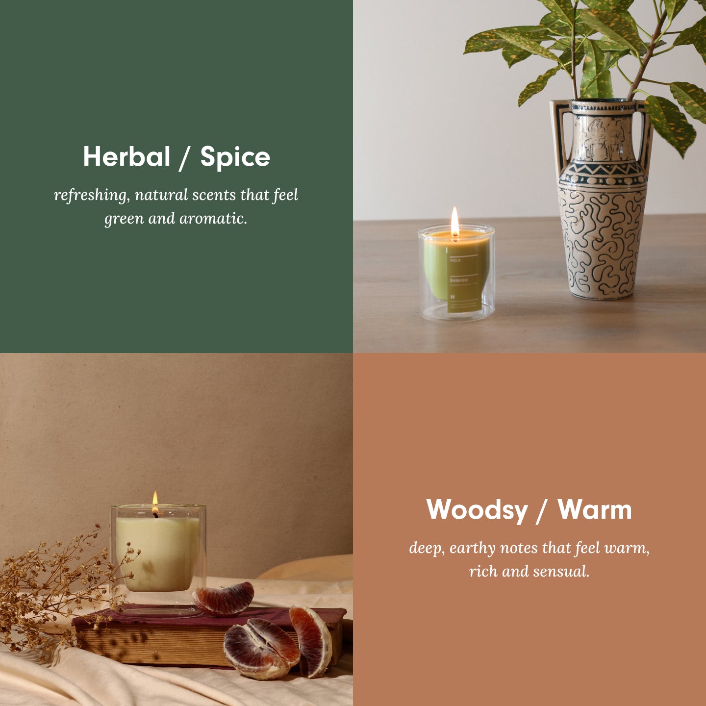 Crafted from organic coconut wax with a cotton wick for clean burning, our Candles fill your senses and your home with the benefits of natural essential oils. Herbal, Woody, Fresh, and Floral fragrances bring a sense of calm and clarity into your space, while the reusable glass vessel can be enjoyed long after the life of the candle.
